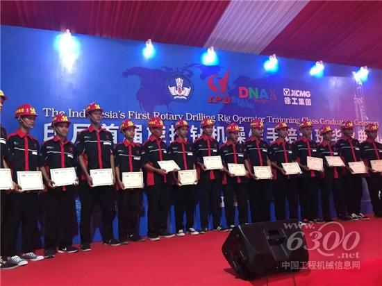 据印尼华人世界电视报道,印尼唐格朗某项目工地上举行了一场别开生面的毕业典礼,毕业的学生是19名旋挖钻机操作手,中国驻印尼大使馆工作人员、印尼文化部等部门的领导为他们颁发了徐工基础和DNA机构授予的操作手合格证和教育认证证书。