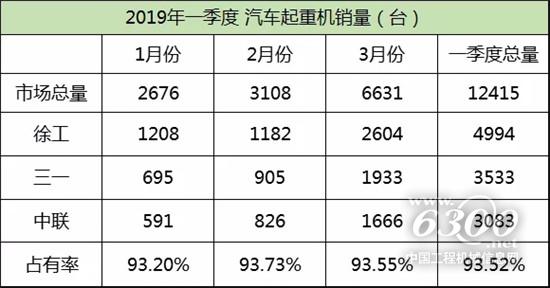 2019年一季度汽车起重机销售数据分析