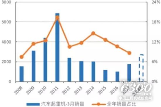 回看历年 汽车起重机三月销量及占比