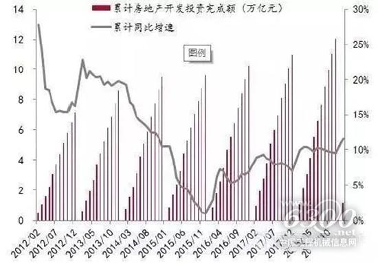 原因是2015年房地产投资增速的下降,2015底,房地产的投资增速一度接近0。但随后国家放宽了楼市限制,房价再次井喷,房地产的开发投资增速也逐渐回升。这也触发了工程机械行业的回暖。