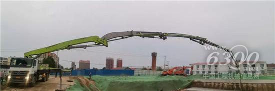 ▲中联重科3桥49米泵车在驻马店某重点工程施工