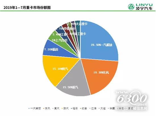 中国重汽7月份销售重卡1.22万辆,今年1-7月累计销售11.54万辆,市场份额为15.8%,位列第三。陕汽集团7月份销售重卡约1万辆,今年前七个月累计销售10.95万辆,市场份额为14.9%。