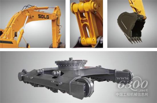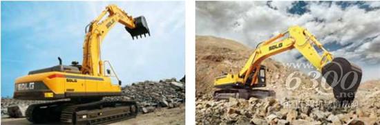 ♦ 选取重载型动臂、矿山专用的斗杆、加强型的上架、带重载防护底板的下架;