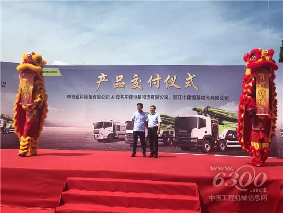 中联重科市场总监兼华东分公司总经理凌孟良、中联重科营销总公司总经理助理兼华东分公司副总经理史伟志、南京旭程投资管理有限公司董事长庞宾、南京旭程旗下广东中建恒基物流有限公司总经理庞小志等领导,和现场百余名嘉宾共同见证了交付盛况。