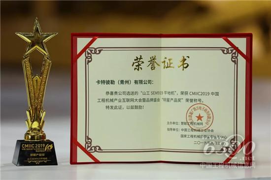 2019年9月3日,山工机械SEM660D装载机和SEM919平地机在CMIIC 2019 中国工程机械产业互联网大会(Construction Machinery Industry Internet Conference 简称CMIIC 2019)暨品牌盛会上被授予“CMIIC 2019 TOP20明星产品奖”。