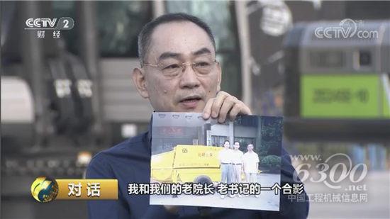 中联重科董事长詹纯新向大家展示公司001号泵下线时的合影