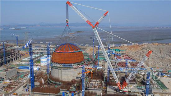 中联重科3200吨履带式起重机吊装“华龙一号”穹顶