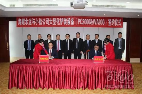 2019年11月6日,小松(中国)投资有限公司(以下简称:小松(中国))与安徽海螺水泥股份有限公司(以下简称:海螺水泥)矿山大型化铲装设备(PC2000&WA900)签约仪式在安徽芜湖海螺国际大酒店举行。签约仪式上,双方签订了4台PC2000-8大型液压挖掘机和1台WA900大型装载机的购销合同。海螺水泥副董事长王建超先生和小松(中国)总经理兼CEO张全旺共同出席了签约仪式。
