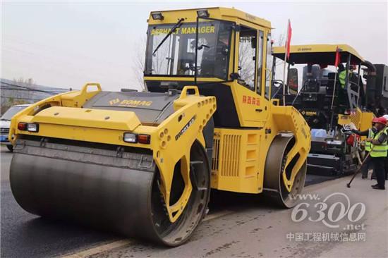 宝马格BF800C摊铺机、BW27RH胶轮压路机、BW203AD-4AM双钢轮压路机在陕西蓝田312国道现场施工视频。