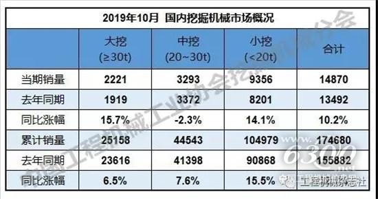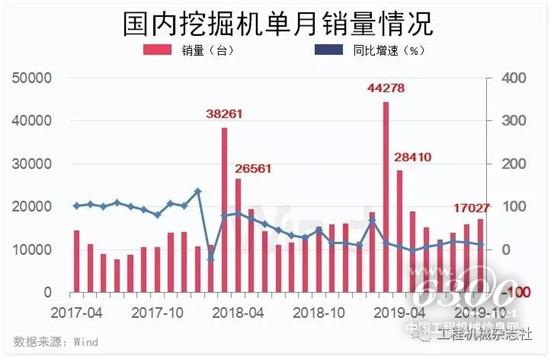 11月8日,中国工程机械工业协会发布统计数据,2019年10月纳入统计的25家挖掘机制造企业共销售各类挖掘机17027台,同比增长11.5%。