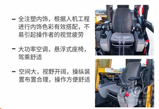 注塑内饰,根据人机工程进行内饰色彩有效搭配,不易引起操作者的视觉疲劳。空间大,视野开阔,操纵装置布置合理,操作方便舒适。大功率空调,悬浮式座椅,驾乘舒适。