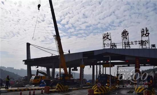 收费站造型各地不一,除了极少数雕梁画栋的古典风格,绝大部分为横跨两端的普通样式,钢结构、跨度大、重量足、回转空间小,这些都给破拆工作增加了不少的难度。