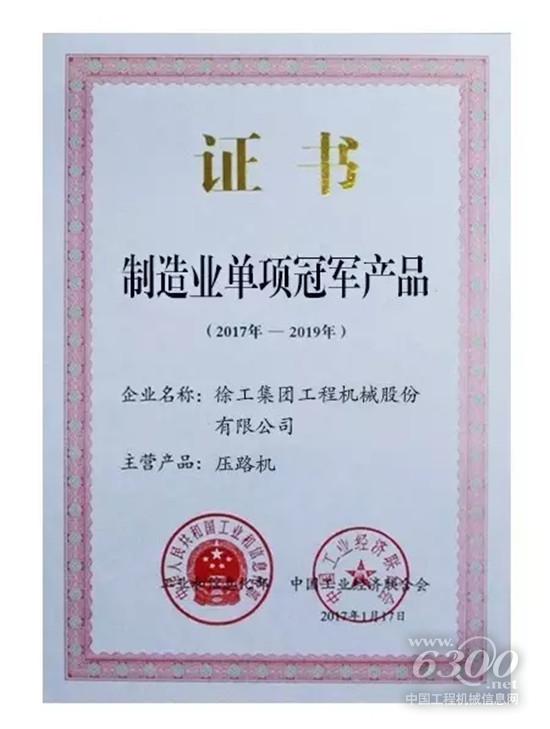 同年,底蕴深厚、市场销量持续领跑的徐工压路机荣获中国制造业单项冠军产品,也是路面机械行业唯一一家获此殊荣的企业!