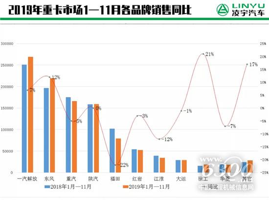 11月份过去后,今年1-11月的重卡市场累计销量达到107.44万辆,比上年同期的106.53万辆小幅增长1%。如果不出意外,2019年全年重卡市场的整体销量将超过115万辆,从而刷新我国重卡行业年销量的新纪录。