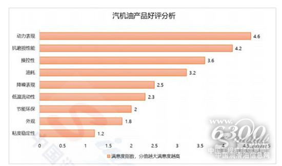从汽机油看,中国润滑油信息网《2018年中国润滑油行业白皮书》“汽机油市场产品好评分析”显示,用户对汽机油产品“动力表现”、“抗磨损性”、“操控效果”和“油耗”方面的性能关注较多,满意度也较高;对于汽机油产品在“节能环保”、“降噪表现”等方面的性能表现普遍较为不满意,这给汽机油产品性能的提升以更大的空间。