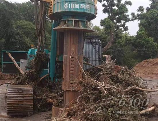 趟着淹没到腰间的淤泥,检查旋挖钻机电路元器件和设备受损情况。陈海波一边用心指导客户清理设备上的泥沙树枝,提醒有关注意事项,一边有条不紊地检查设备发动机和阀组等液压系统。经过三天的清理和检修,客户再一次听到了旋挖钻机发动机的轰鸣声,内心充满幸福的喜悦。