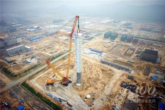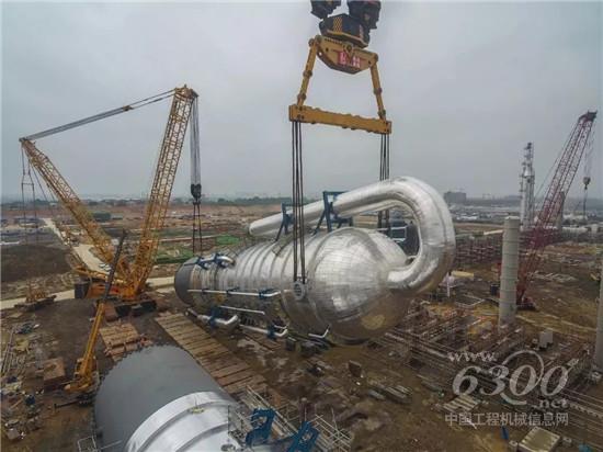 用时不到3小时,将中科炼化乙烯装置中高100米、塔径5.2米、重800吨的乙烯大塔凌空跃起,稳稳地吊装就位。