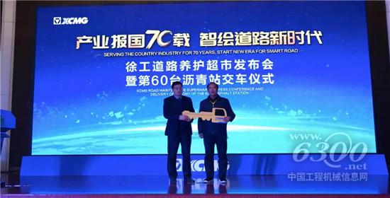 会上,徐工道路副总经理、养护公司总经理宋宗华为购买第60台沥青站的客户颁发了象征友谊的“金钥匙”,从1996年,我国最早生产的2000型沥青拌和站在徐工诞生,到今天产品达3大类、29个系列、139种型号,诞生了一大批高端、高技术含量、高可靠性、大吨位“三高一大”产品。