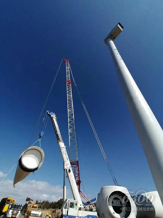 此次吊装的机型单机容量3.3兆瓦,轮毂中心高度达100米,叶轮直径达146米,扫风面积16700余平方米,主臂102m米,固定副臂7米;吊钩最大起升高度可达106米,最大起重量140吨。随着#41风机叶轮缓缓上升与机舱传动链合拢,标志着西南地区最大单机容量为3.3兆瓦的首台风机吊装成功,开创了国内100米以上轮毂高度分体吊装风机的先河。该风机的成功吊装再次体现了中联产品适应于山地风电的优势。