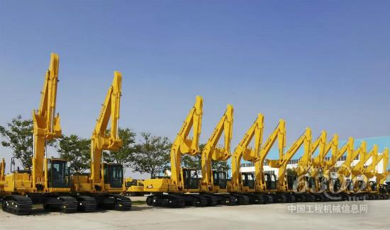 4月份江苏市场需求延续火爆态势,山推挖掘机依旧供不应求,运载着7台山推SE215-9A挖掘机的大型拖车一字排开,依次从厂内出发运往无锡,于4月26日运抵并交付大客户,7台山推“大黄”开始投身于无锡城市建设之路中。