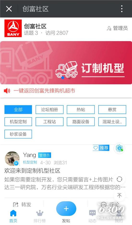 在信息爆炸的时代中,谁掌握了资讯和机会,谁就掌握了商机。为了解决乡村建设中距离远、人力覆盖效果不佳、设备有限的特点,我们特别在创富先锋购机平台搭建了创富论坛版块。用户可在论坛版块进行实时交流,分享设备使用心得、设备工况,进行设备租赁或在建项目分享。