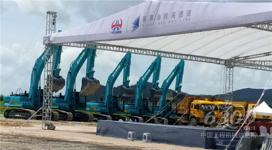 山河智能挖掘机作为工程机械唯一代表亮相黄茅海跨海通道项目开工仪式。