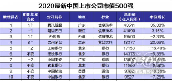 不管圆不圆满,2020上半年都已收官,各项盘点也就随之而来。7月1日晚,《21世纪经济报道》旗下的21数据新闻实验室公布了最新中国市值500强榜单。