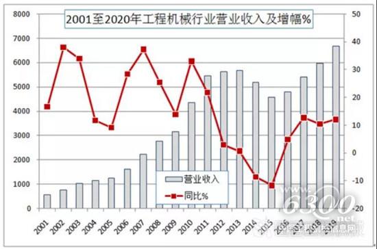 2019年,中国工程机械行业实现营收6681亿元,同比2018年增长12%,在机械制造行业排名位于前列。