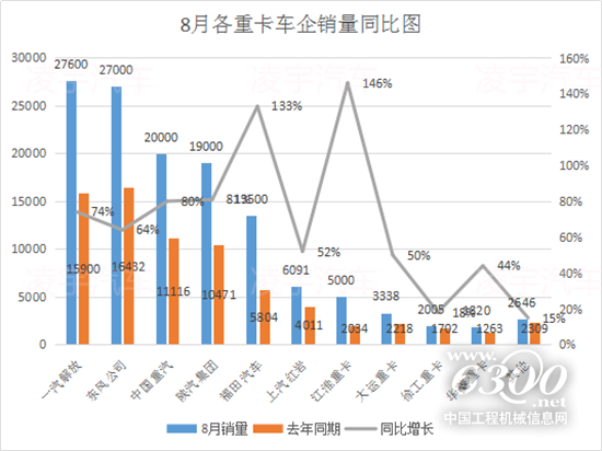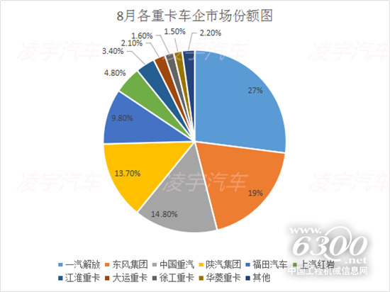 8月份重卡市场整体销量持续增长,那各大主流车企的销量情况又是什么样的呢?
