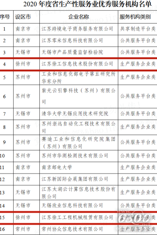 经自愿申报、各地推荐、形式审查、专家评审和网上公示等一系列严格程序,徐工信息、徐工租赁获评江苏省生产性服务业优秀服务机构。