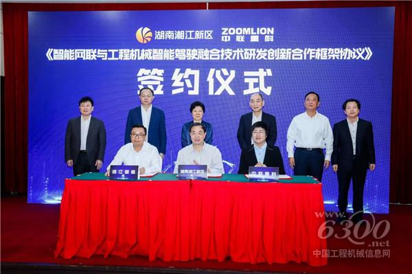 签约仪式上,湖南湘江新区管委会、中联重科、湘江智能签订合作协议,三方将充分发挥各自优势,利用自身资源,推动长沙智能网联与工程机械智能驾驶的融合应用、研发创新、标准共建等方面实现创新发展,加速推进应用场景商业化、市场化、产业化,打造新的千亿级战略性新兴产业。