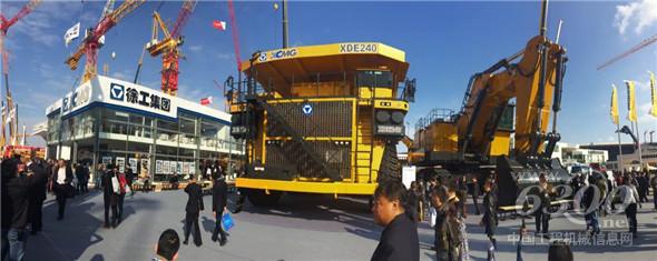 2014年,徐工400吨液压挖掘机与240吨电传动矿用自卸车参展上海宝马展
