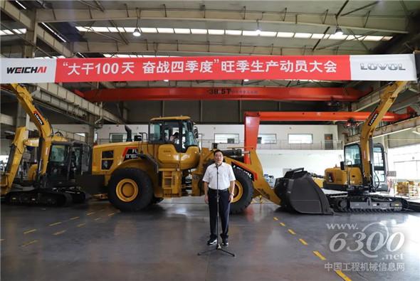 9月22日上午,以“大干100天、奋战四季度”为主题的旺季生产动员大会在挖掘机总装车间下线处举行。工程机械班子成员、生产部、采购部、质量管理部全员、各职能部门管理干部及业务骨干,共计约900人参加启动仪式。