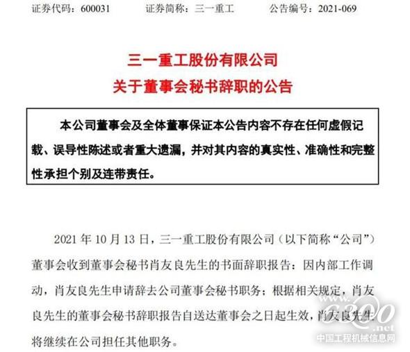 2021年10月15日,上交所上市公司三一重工股份有限公司在巨潮资讯网中发布了两份公告。