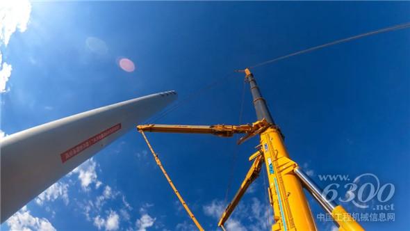 XCA1600主臂出臂126米,负责叶尖部分吊装;QAY650A出臂74.7米,主吊扇叶根部。锁定好工况后,两台风电专家协力配合。两台车抬吊同一片扇叶,不仅是对操机手的高超技能的考验,更是对产品协调性的检验。