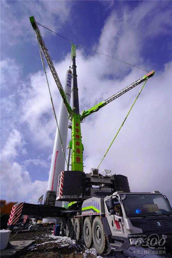 海晏县地貌类型复杂,位于青海湖盆地的东北部,因地处青藏高原,属高原大陆气候,寒冷的天气时常出现大风大雪;本次施工的风电场海拔高达4000米,施工过程中达到了-10℃的极寒天气,如此恶劣的施工环境对于进行吊装的起重机要求也极为严苛,起重机的发动机能力更是要能够经受极大的考验。最终,ZAT8000H7凭借自身过硬的实力,圆满完成本次吊装任务。