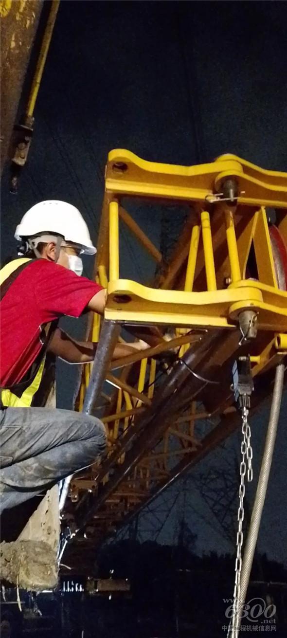 10月26日晚上八点,徐工起重机海外经理李培磊接到客户的电话,XCT130正在曼谷Bangbo地区抢修电塔,需要加装20.8米副臂。情况紧急,电塔切断导致周边停电,多耽误一分钟损失就增大一分。挂上电话后,李培磊一边准备所有可能用的上的配件,一边联系当地经销商,调拨人员和车辆,二话不说直奔施工现场。
