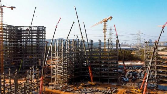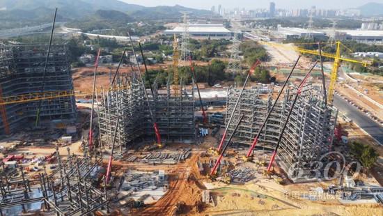 目前,该项目多个楼栋已完成钢结构封顶。项目建成后,将成为“双碳”背景下,装配式钢结构建筑的一大亮点工程。政策利好的背后,也揭示了中大吨位汽车起重机在钢结构领域的前景十分广阔。