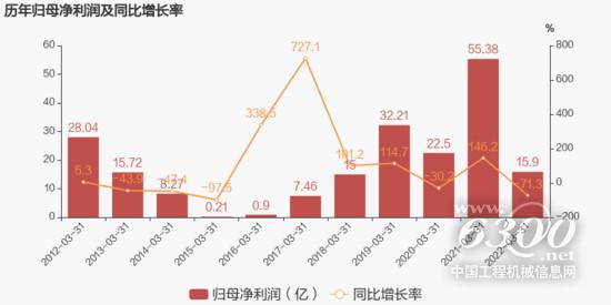 2. 三一重工:2022年一季度营收202.8亿,归母净利润15.9亿;