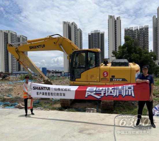第二站,我们走访的是海南省三亚市崖洲区的麻先生,机型是山推SE215-9W。走访小组在沟通中得知,这个夏季,麻先生和他的挖掘机顶着烈日已经持续施工多日,看到服务人员的到来让他倍感欣慰,麻先生表示该设备动力相当强,并且还比较省油,零部件比较耐磨,无论从设备油耗、灵活性还是作业效率都要比外资品牌好,看着麻老板的笑容,服务人员也欣慰的笑了。