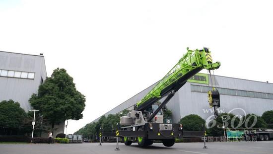 ▲中联重科发布的全球首台纯电动越野轮胎起重机