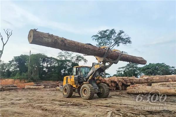 这里位于非洲中部横跨赤道,森林覆盖率高达85%,木材资源优渥,开采工地随处可见,对转运木材利器的徐工夹钳型装载机使用量巨大。