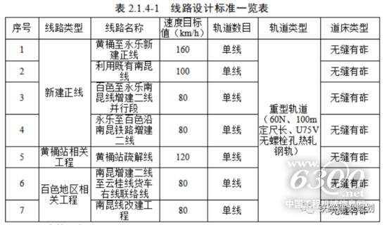 正线设计速度:普客160km/h,货车80km/h;相关工程:普客80~120km/h,货车80km/h。