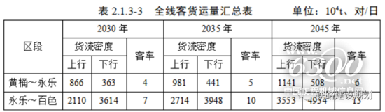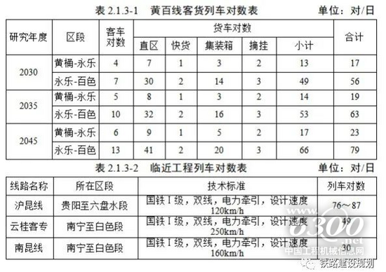 本工程主要以通过运量为主,地方运量较小。通过运量承担成都平原经济区、隆黄沿线、川南等地区与北部湾地区的货运交流,上行货物主要为铁矿石、集装箱、钢铁等,约占通过运量的75%,下行货物主要为集装箱、化肥(泸天化的氮肥)、工程机械(泸州地区的挖、压等工程机械)、 钢铁等货物,约占通过运量的65%。本线货车采用HXD1C双机牵引4000t,编挂50辆。