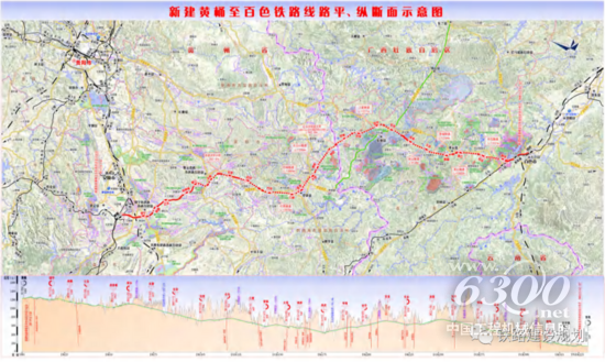 黄桶至百色铁路运营长度为315.10km,建筑长度为312.63km,其中黄桶至永乐新建正线300.40km、利用既有南昆线0.94km、永乐镇至百色增建南昆铁路二线11.28km。