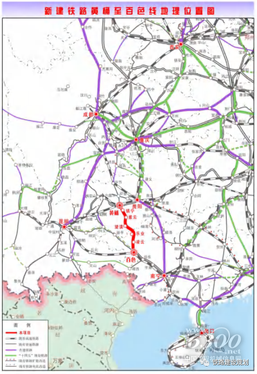 黄桶至百色铁路走向示意图▼