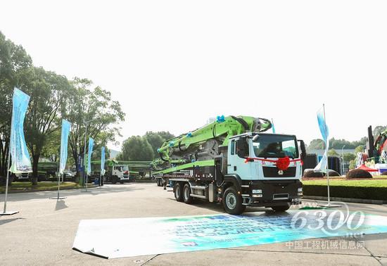 ▲中联重科混凝土泵送机械批量出口新加坡发车仪式现场