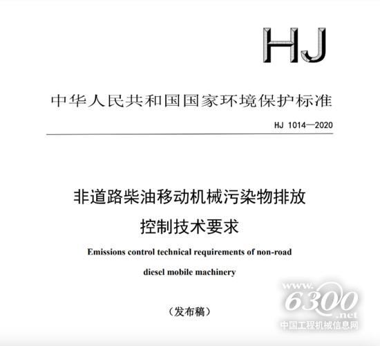 2020年12月, 生态环境部与国家市场监督管理总局联合发布了《非道路移动机械用柴油机排气污染物排放限值及测量方法(中国第三、四阶段)》(GB 20891-2014)修改单,并发布了其配套技术规范《非道路柴油移动机械污染物排放控制技术要求》(HJ1014-2020)。