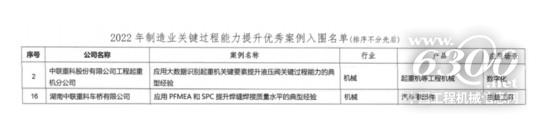 “2022年制造业关键过程能力提升优秀案例”主要聚焦对产品质量起决定性影响的制造过程,推动数据驱动的实时在线制造过程能力测量分析与控制,不断提高制造过程质量控制能力,提升产品制造的一致性、稳定性。中联重科工起公司的“应用大数据识别起重机关键要素提升液压阀关键过程能力的典型经验”和中联重科车桥公司的“应用PFMEA和SPC提升焊缝焊接质量水平的典型经验”入选该名单。