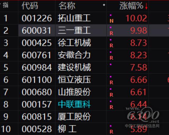 行业人士认为,随着各地基建持续发力,地产行业“三支箭”落地,工程机械需求回暖预期开始强化。基于低估值和行业触底回升预期,有资金开始进场收集“低价”筹码,今日,包括恒立液压(601100.SH)、徐工机械(000425.SZ)、三一重工(600031.SH)、中联重科(000157.SZ)等机械“茅”创年内新高。